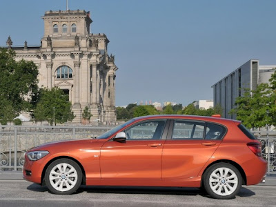BMW 1-Series Sport Line includes sports seats with exclusive coverings, a sports leather steering wheel with red contrast stitching, a red keyclasp, an adjustable armrest, high-gloss black interior trim strips and matt coral red accent strips. The instrument cluster features special Sport numbers and scales. The ambient lighting can be switched between orange and white, and includes additional light sources in the centre console and footwell. Other features of the BMW Sport Line include exclusive 16-inch star spoke light-alloy wheels, black trim for the exhaust tailpipe, and door sill finishers with “BMW Sport” lettering. The bars of the kidney grille, the trim bar in the central air intake, the side intake surrounds and the rear bumper trim are all high-gloss black. Additional options include high-gloss black mirror caps and 17-inch bi-colour light-alloy wheels.